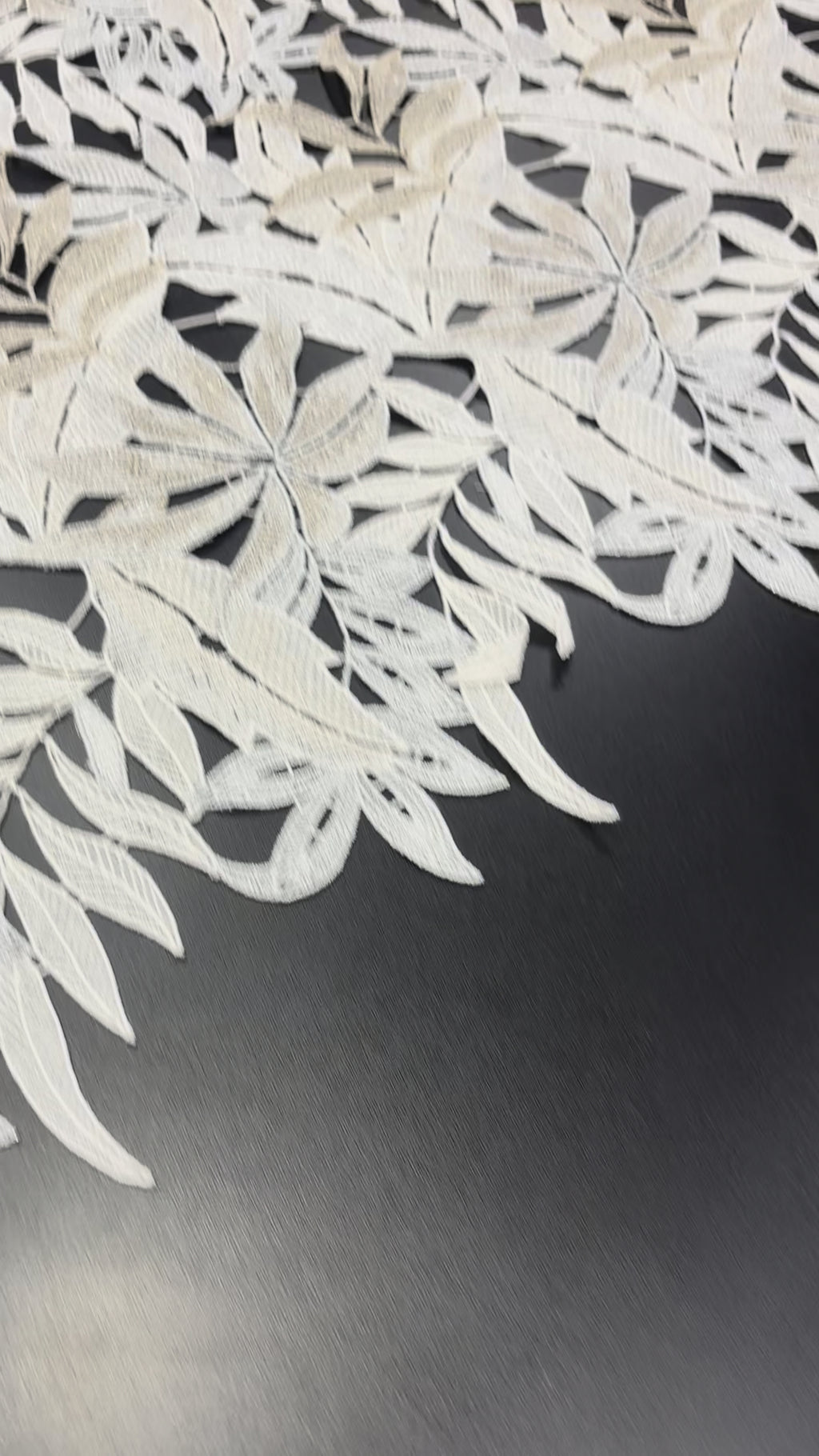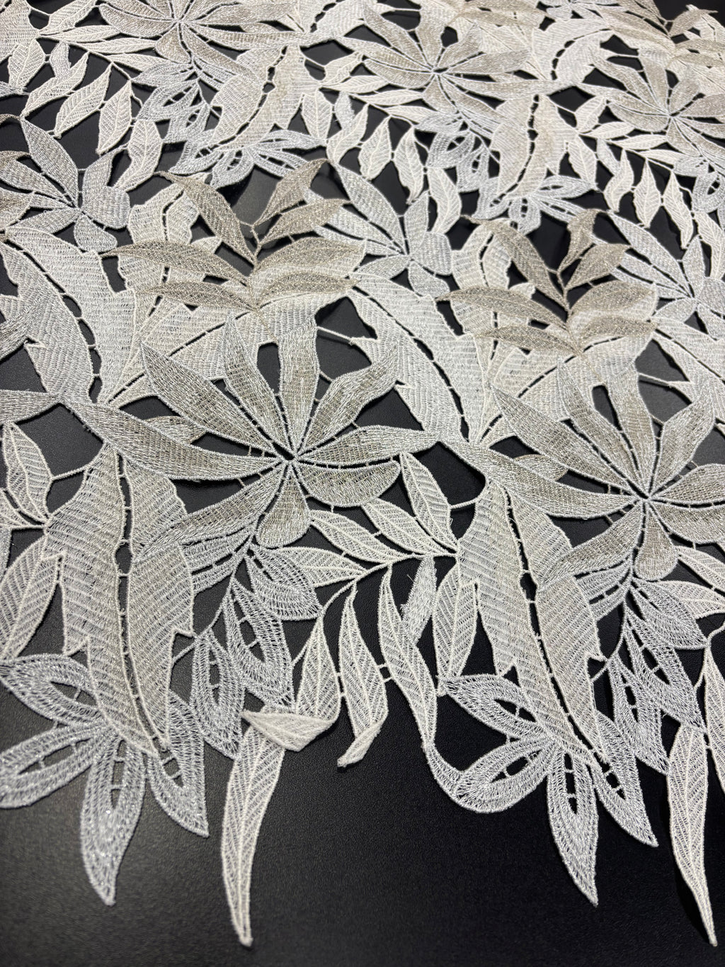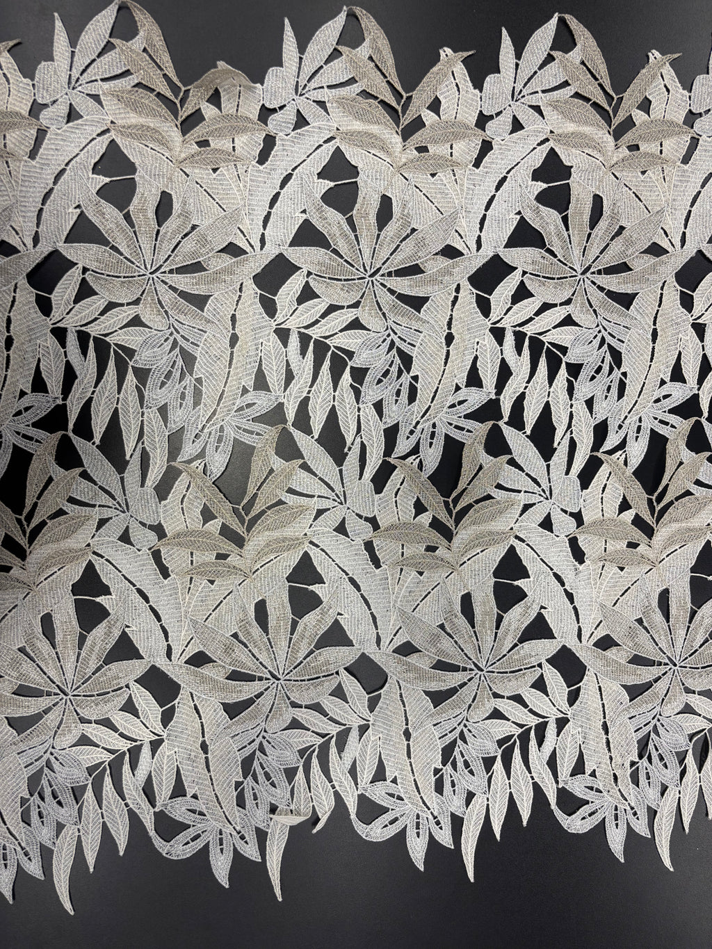 VALOR DA PEÇA Guipir em tons prateados com off white. Folhagens.