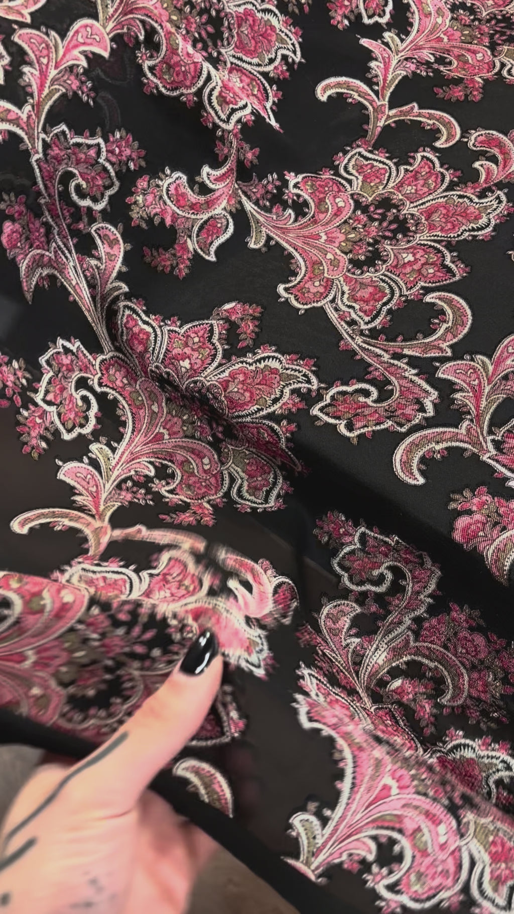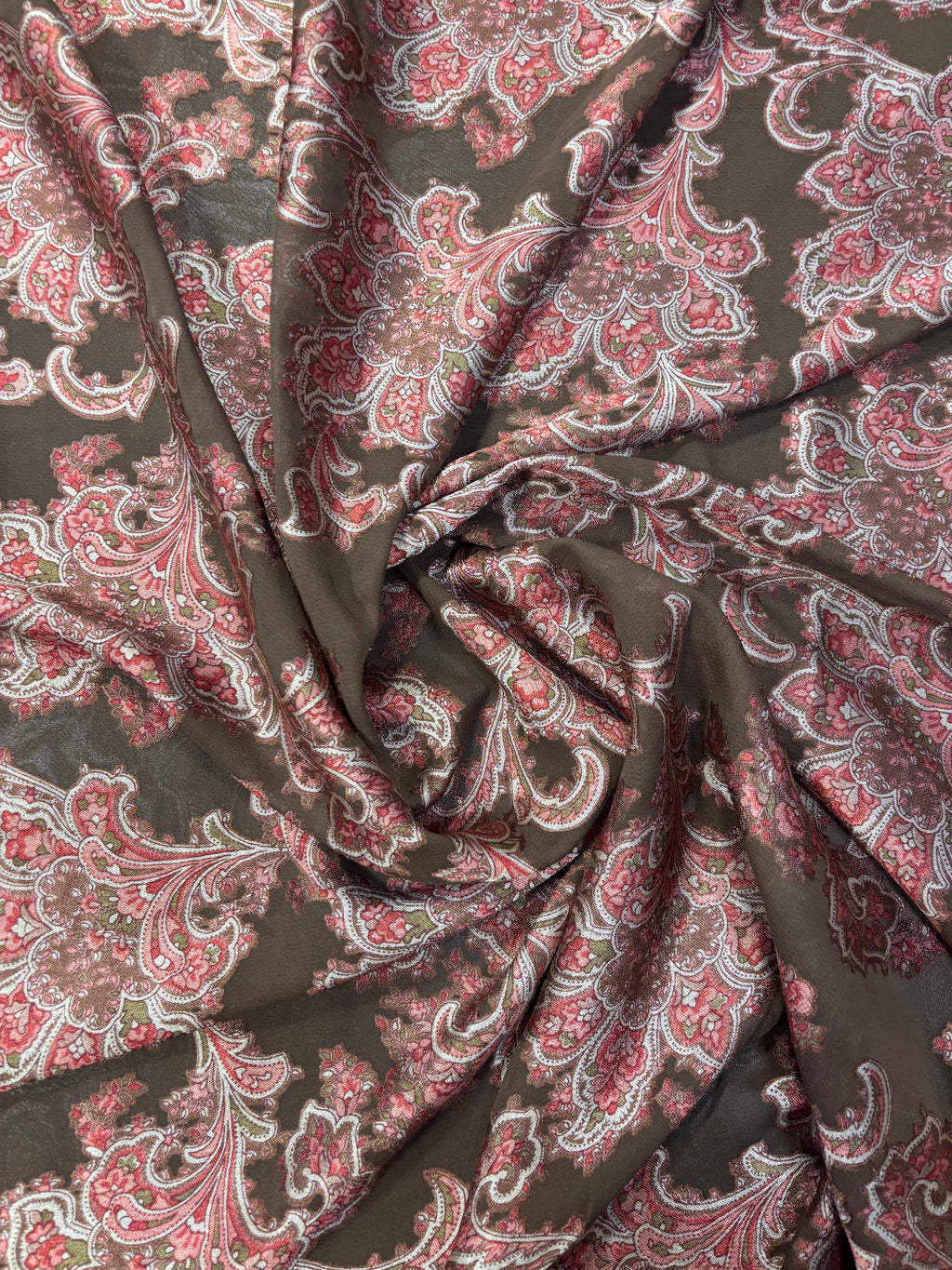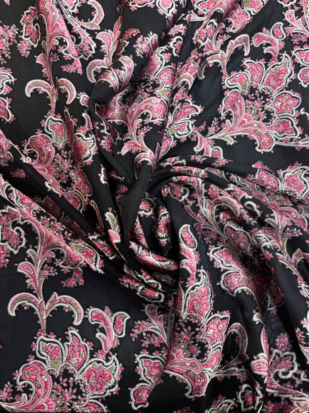 Crepe de viscose estampado, com transparência. Composição: 90% Viscose 10% Poliéster