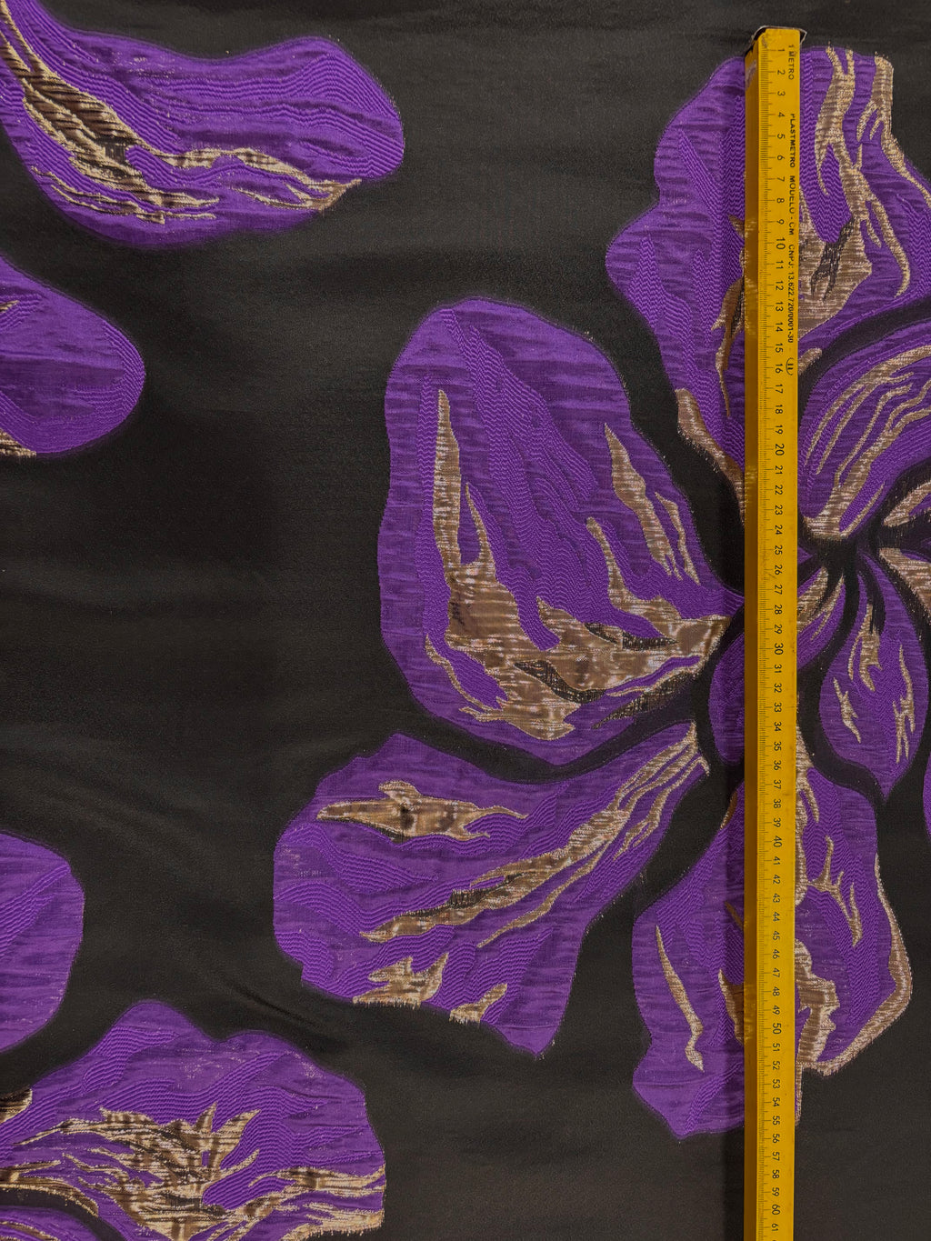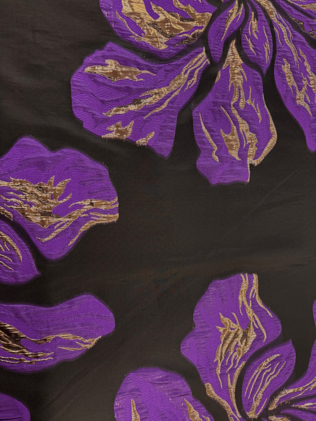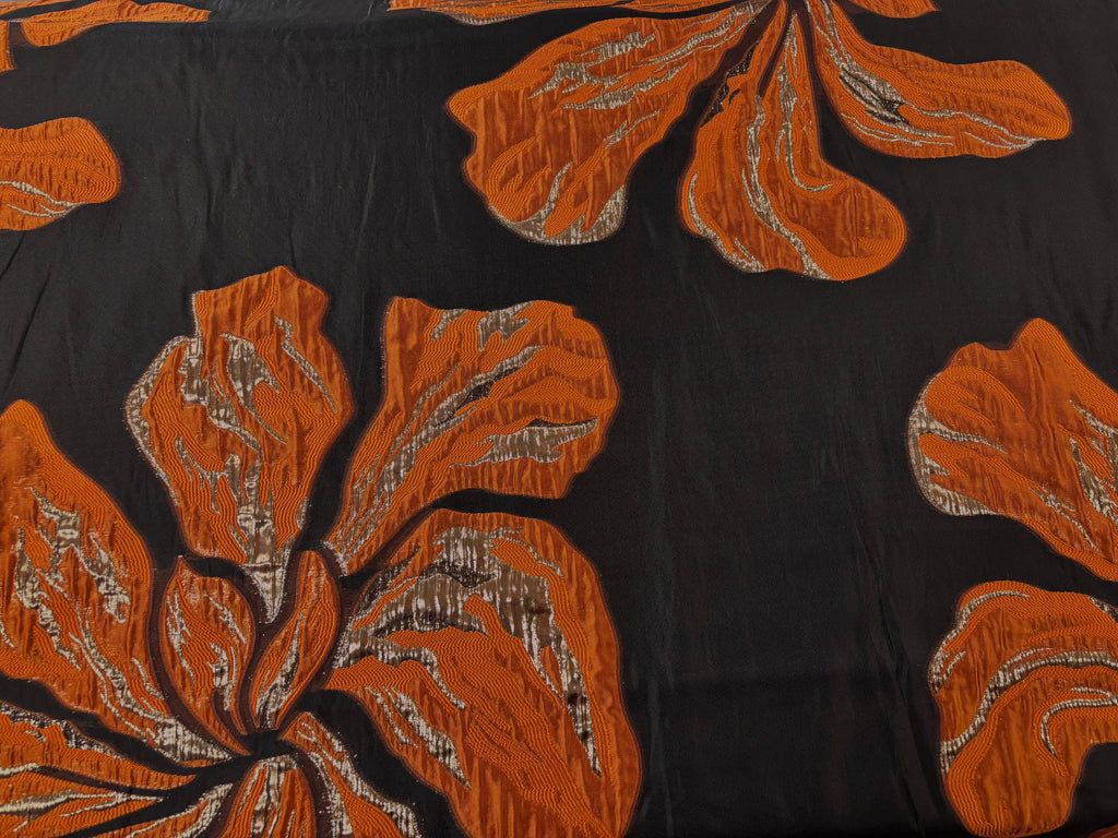 Brocado com base na organza preta e pafrão floral bem grande.