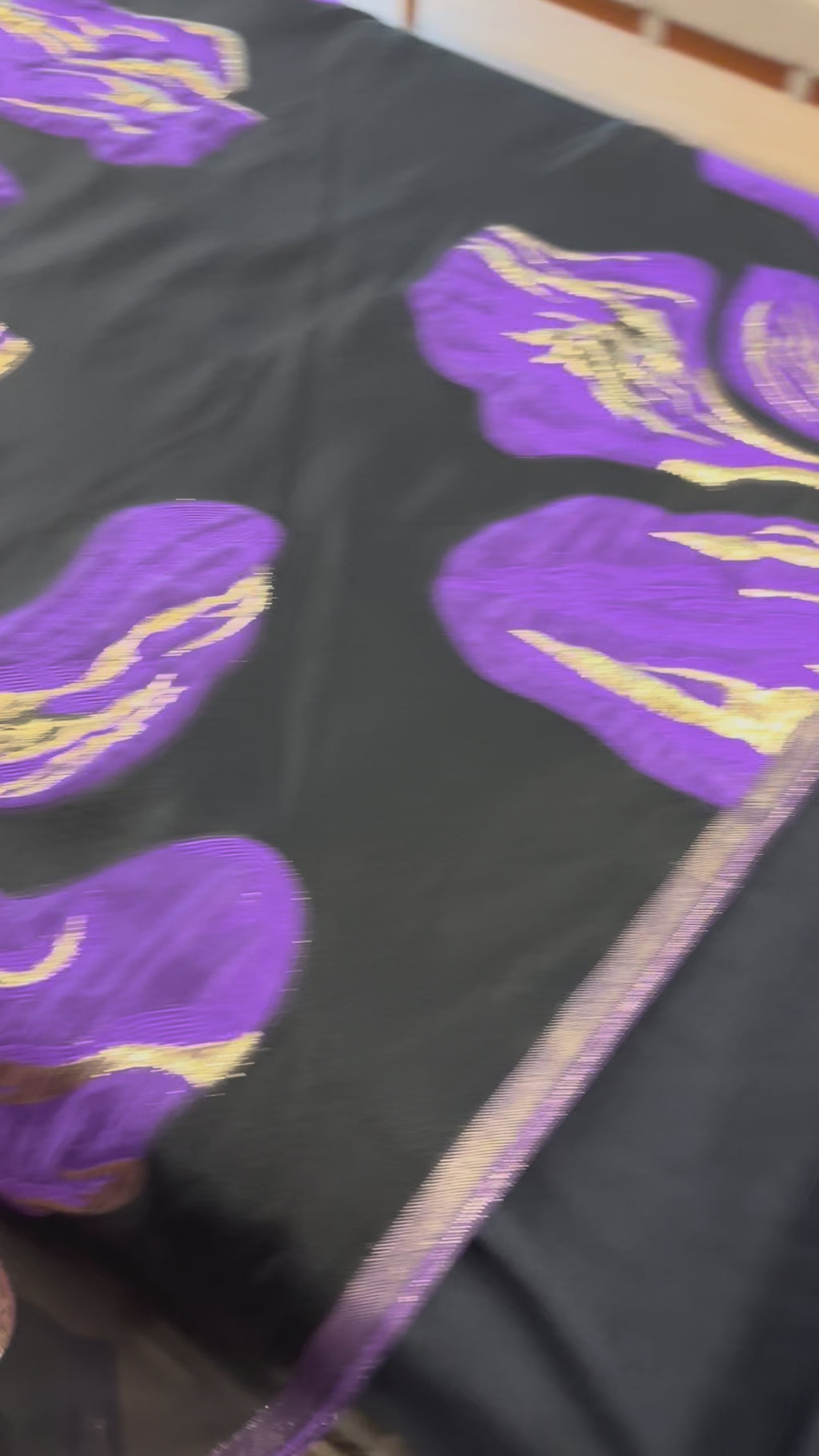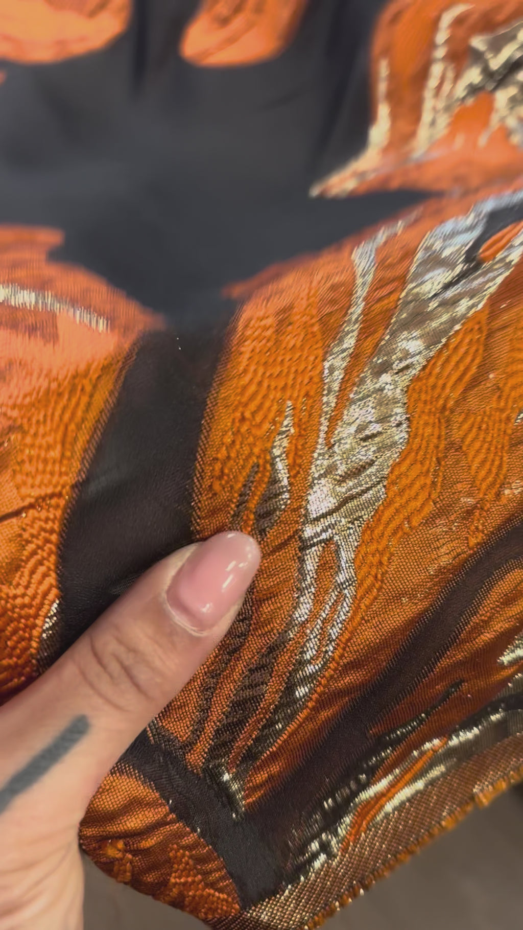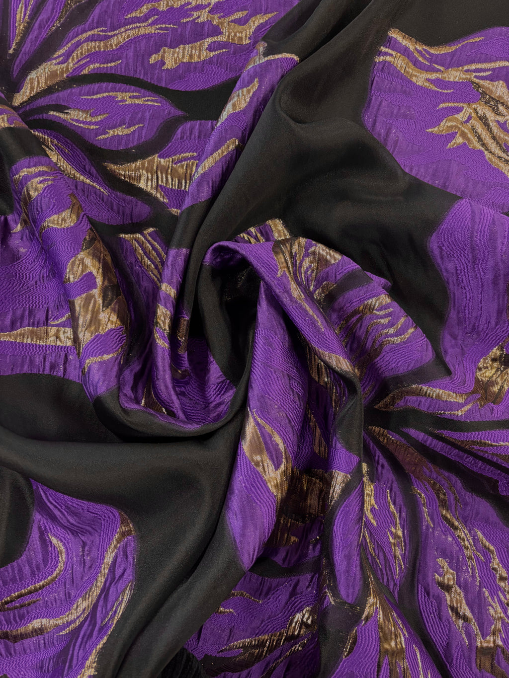 Brocado com base na organza preta e pafrão floral bem grande.