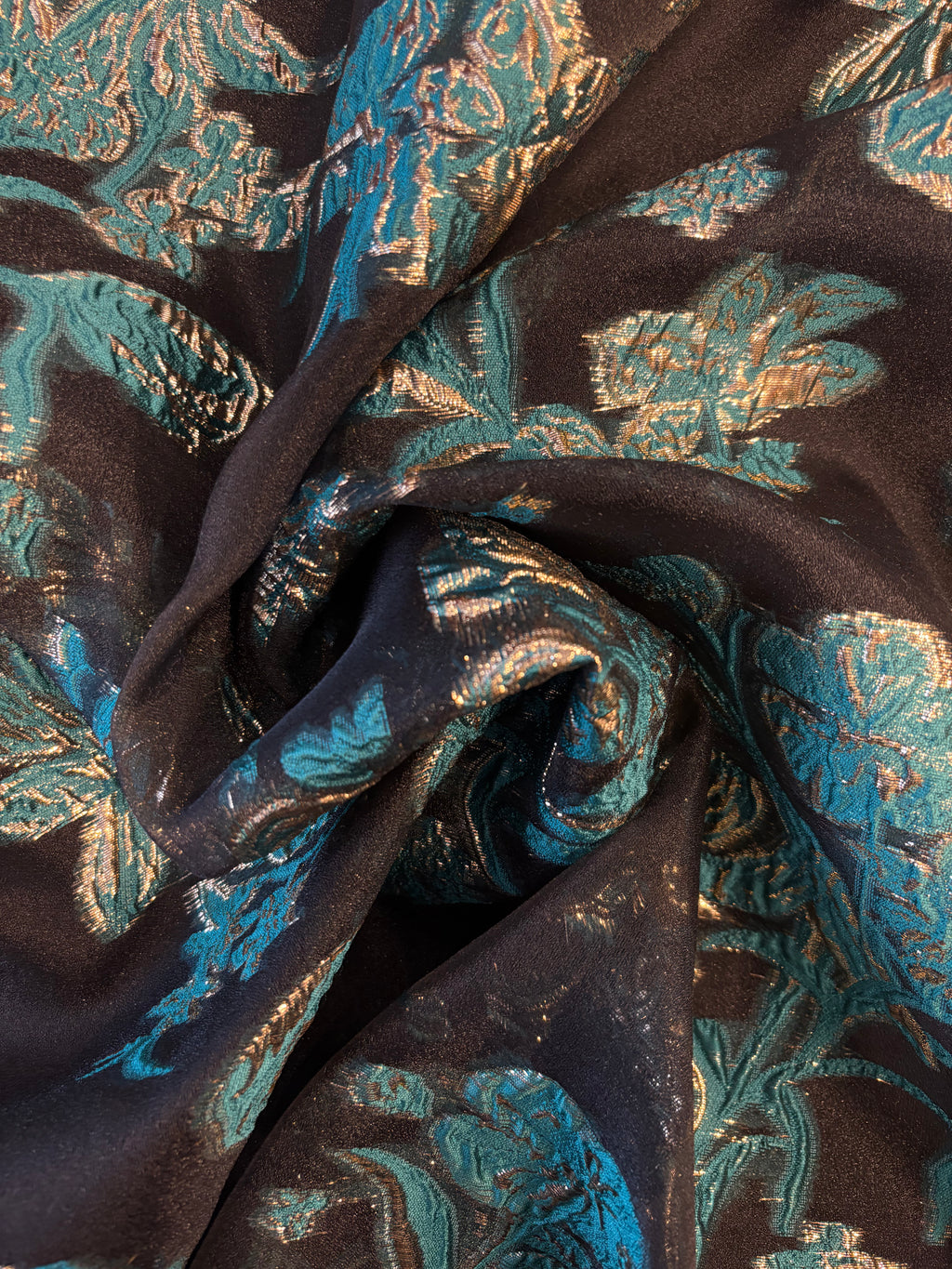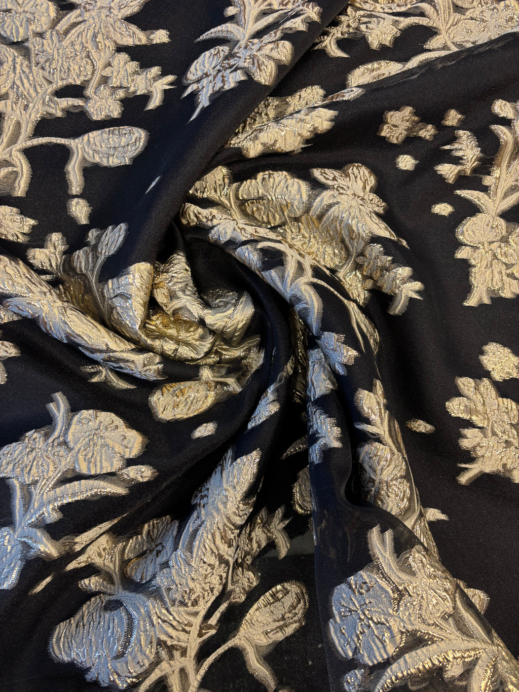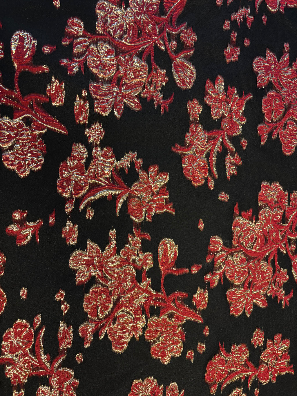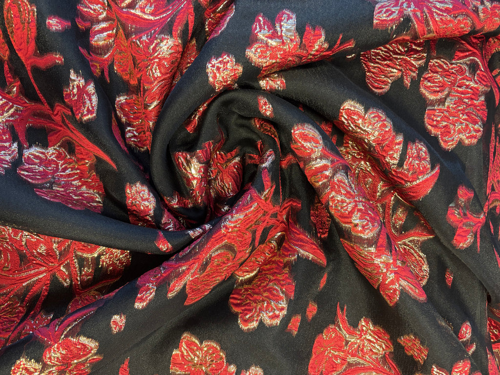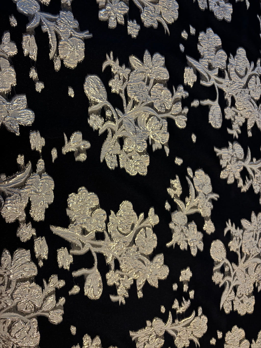 Brocado em organza preta. Padrão floral, disponível em três cores.