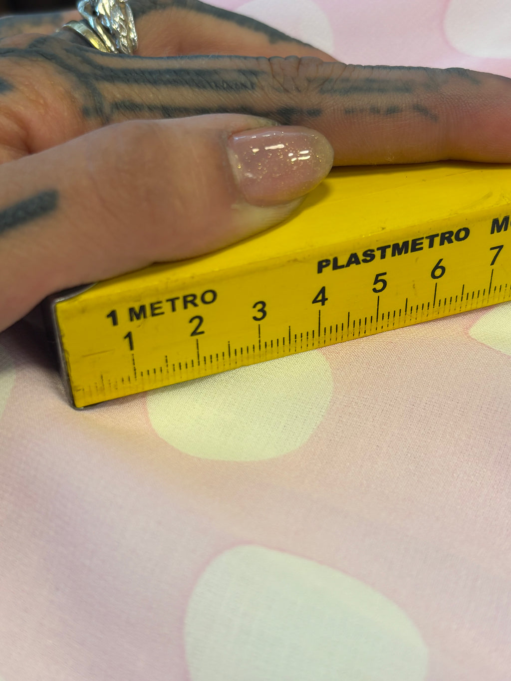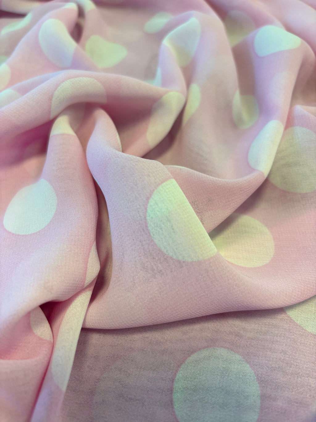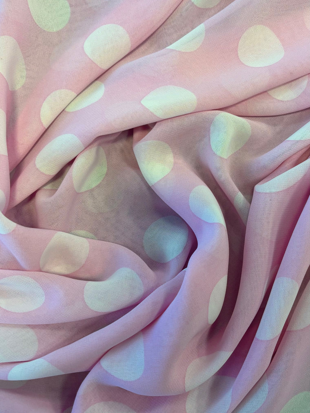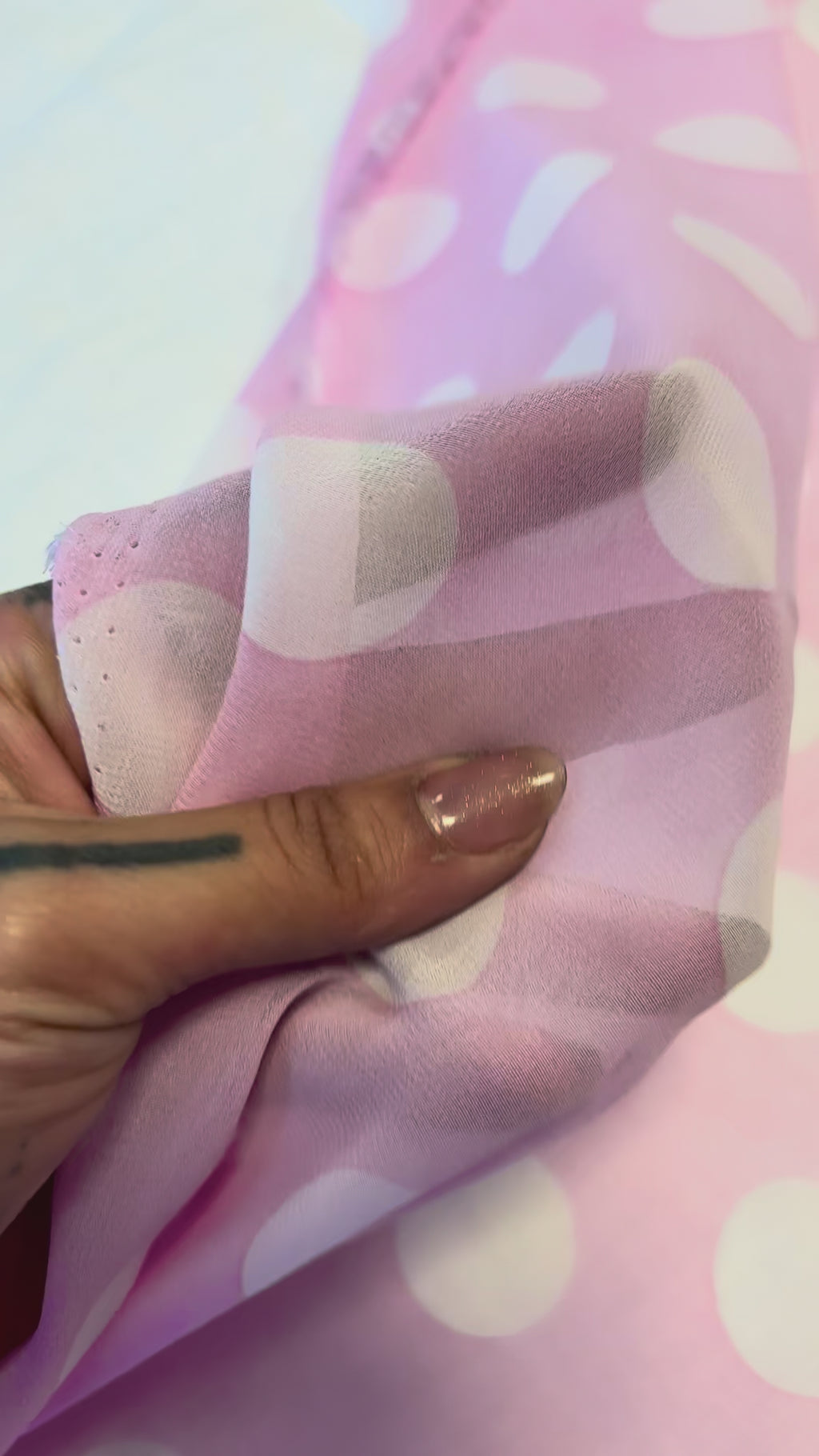 Musseline padrão poá. Tecido leve, fluido e com transparência.