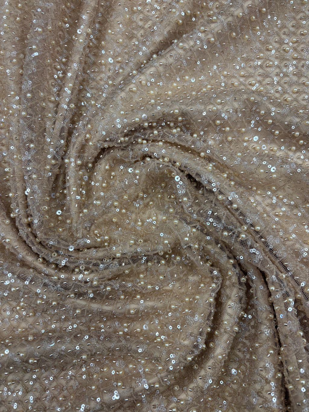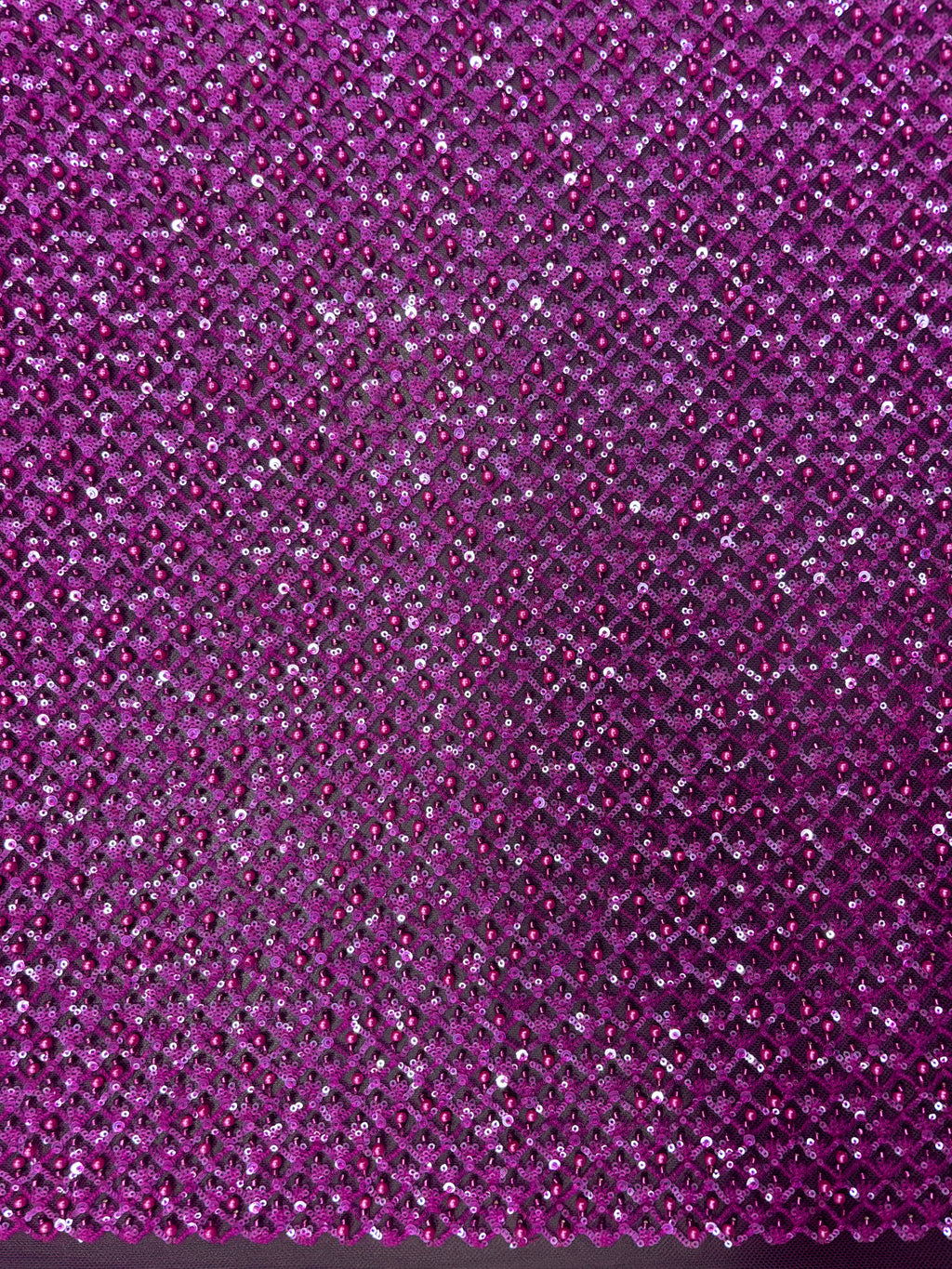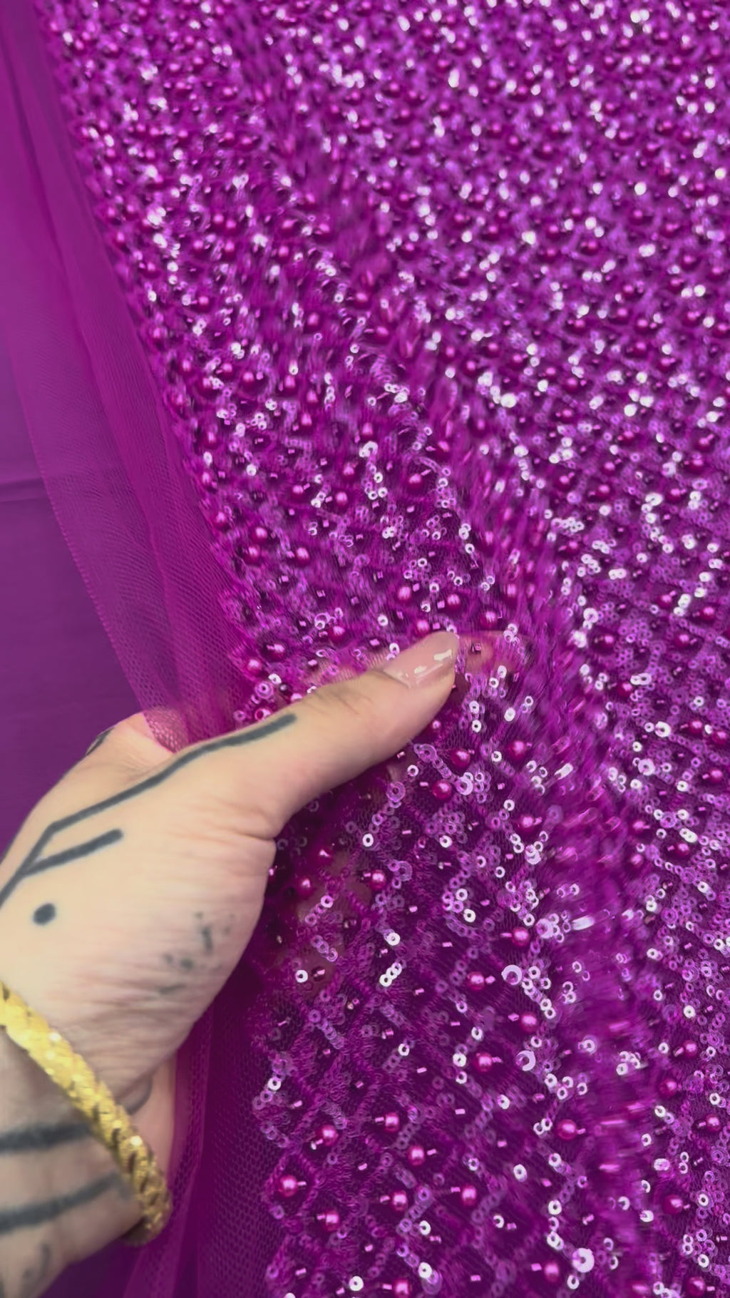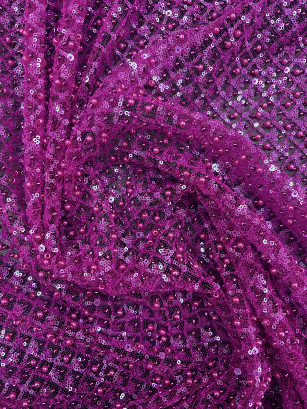 Tule bordado com paetês e pedrarias. Efeito bem brilhante. Disponível no dourado e no rosa. Padrão geométrico de losangos.