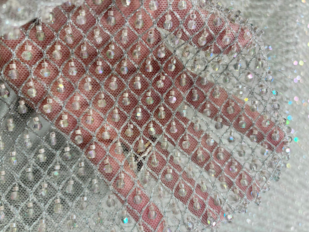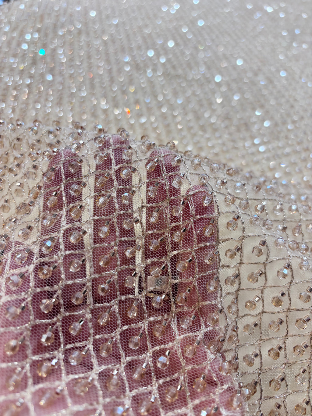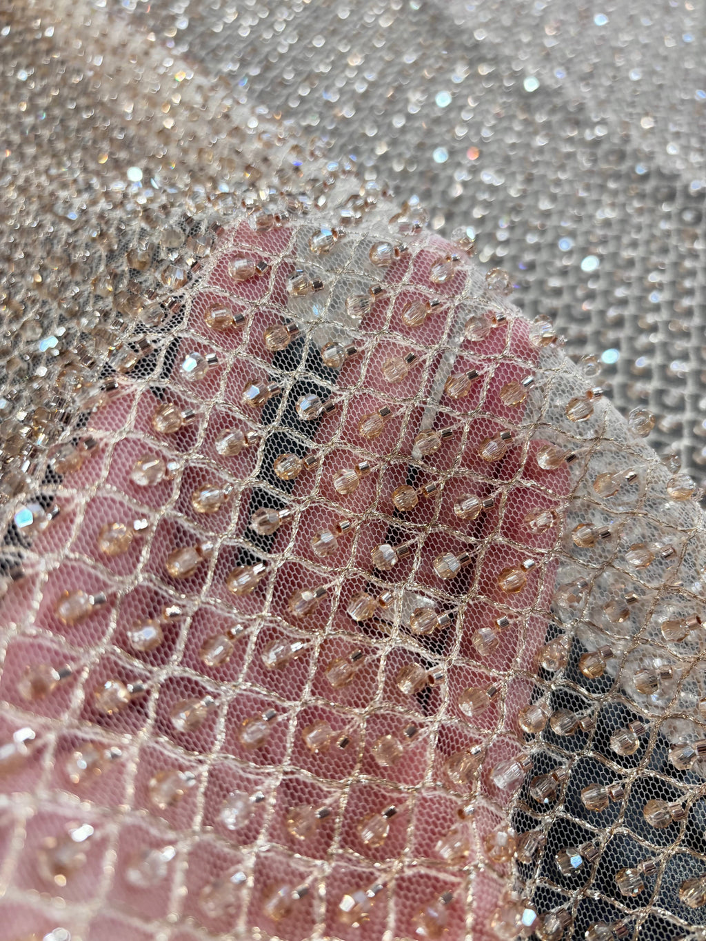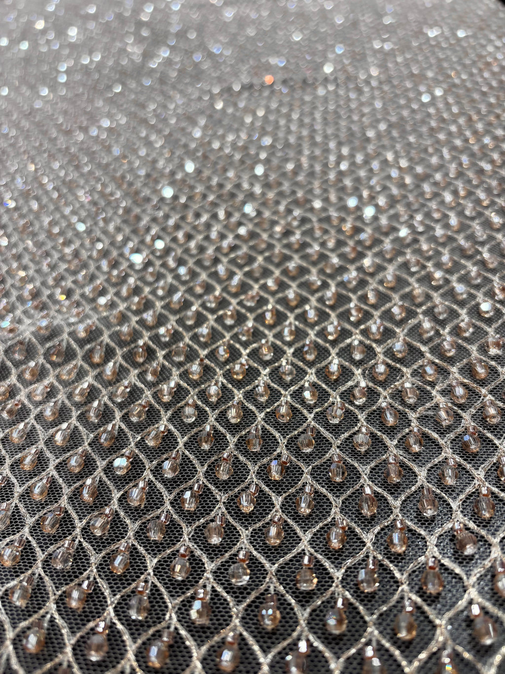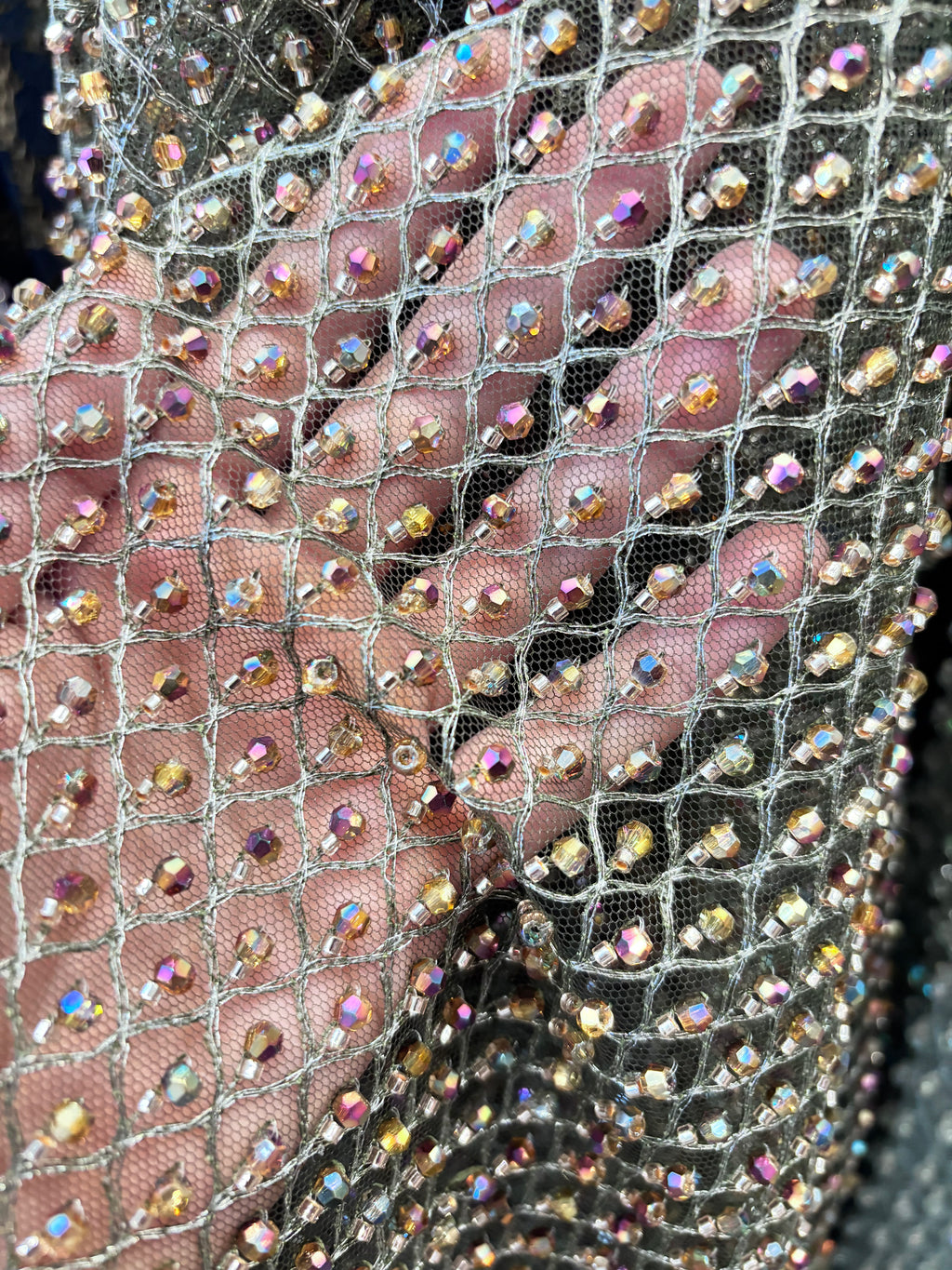 Renda importada padrão geométrico. BEM BORDADA. Pesada. Com bastante brilho e cristais. Veja os vídeos.