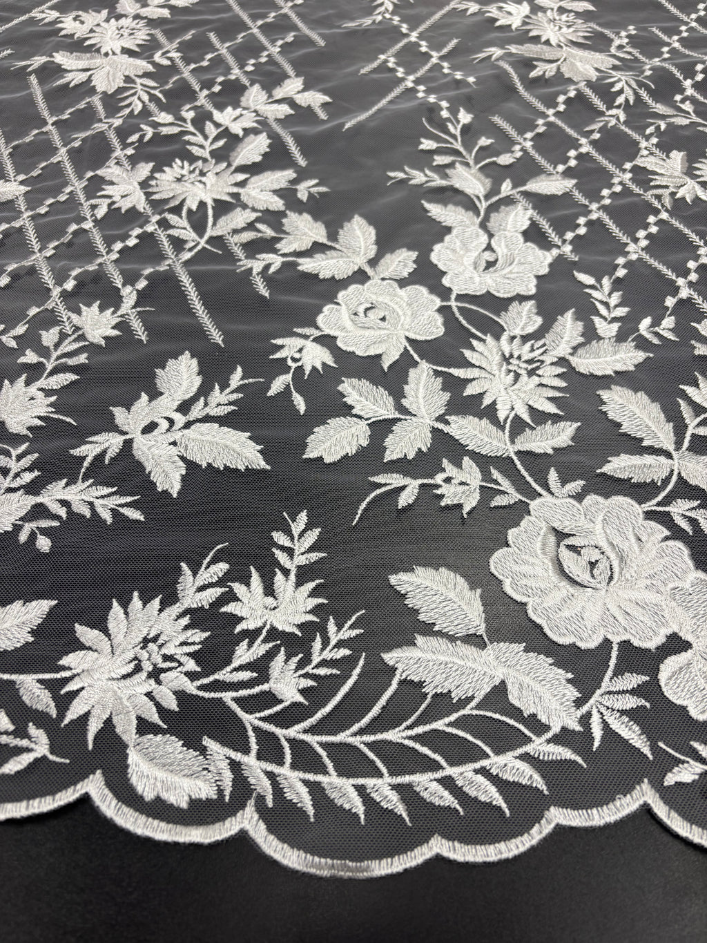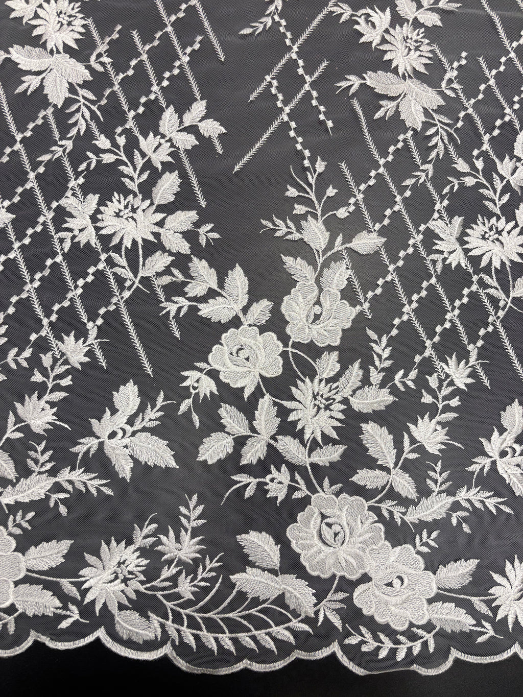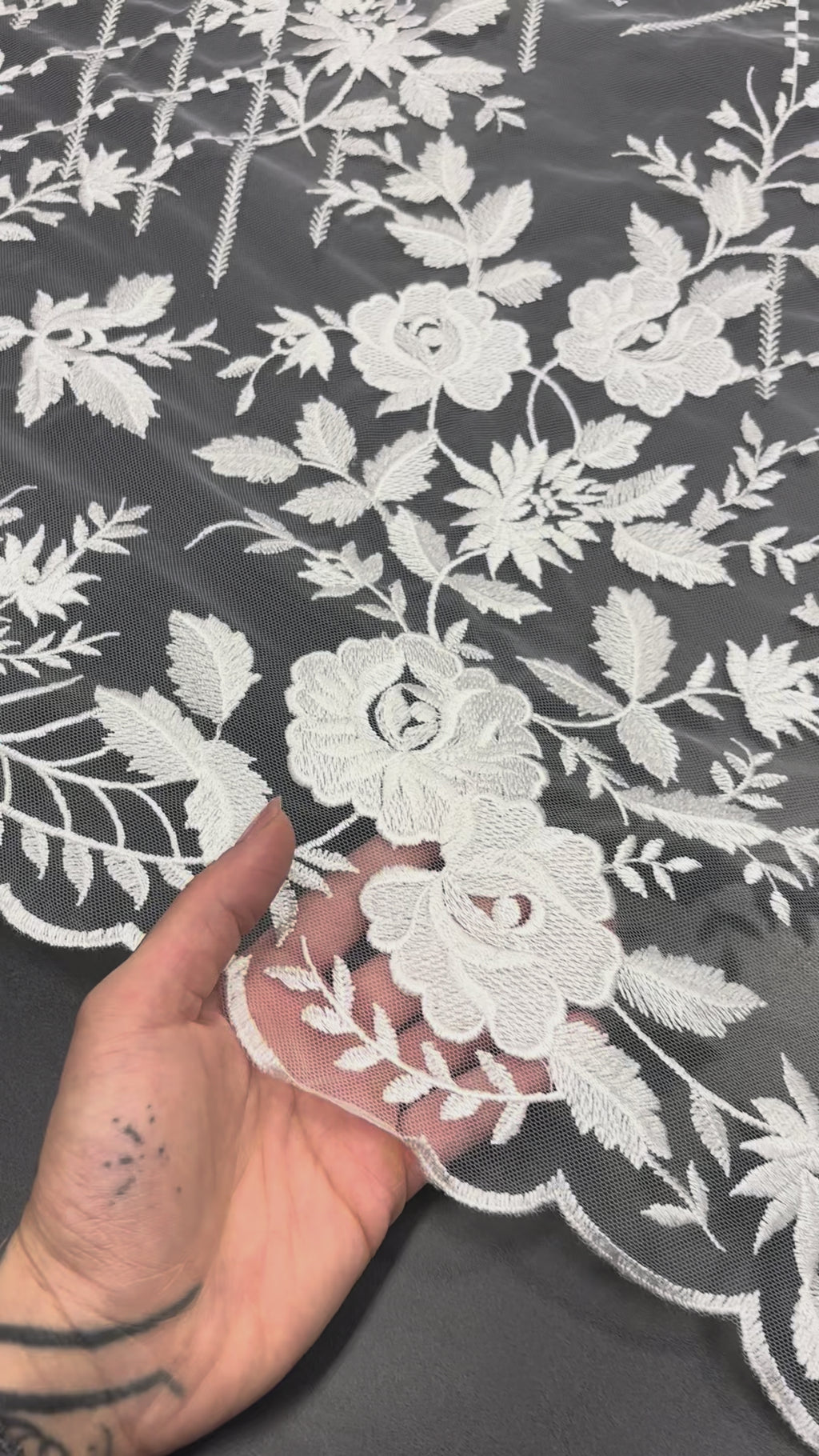 Renda off white. Com bico nas duas pontas. Padrão floral.