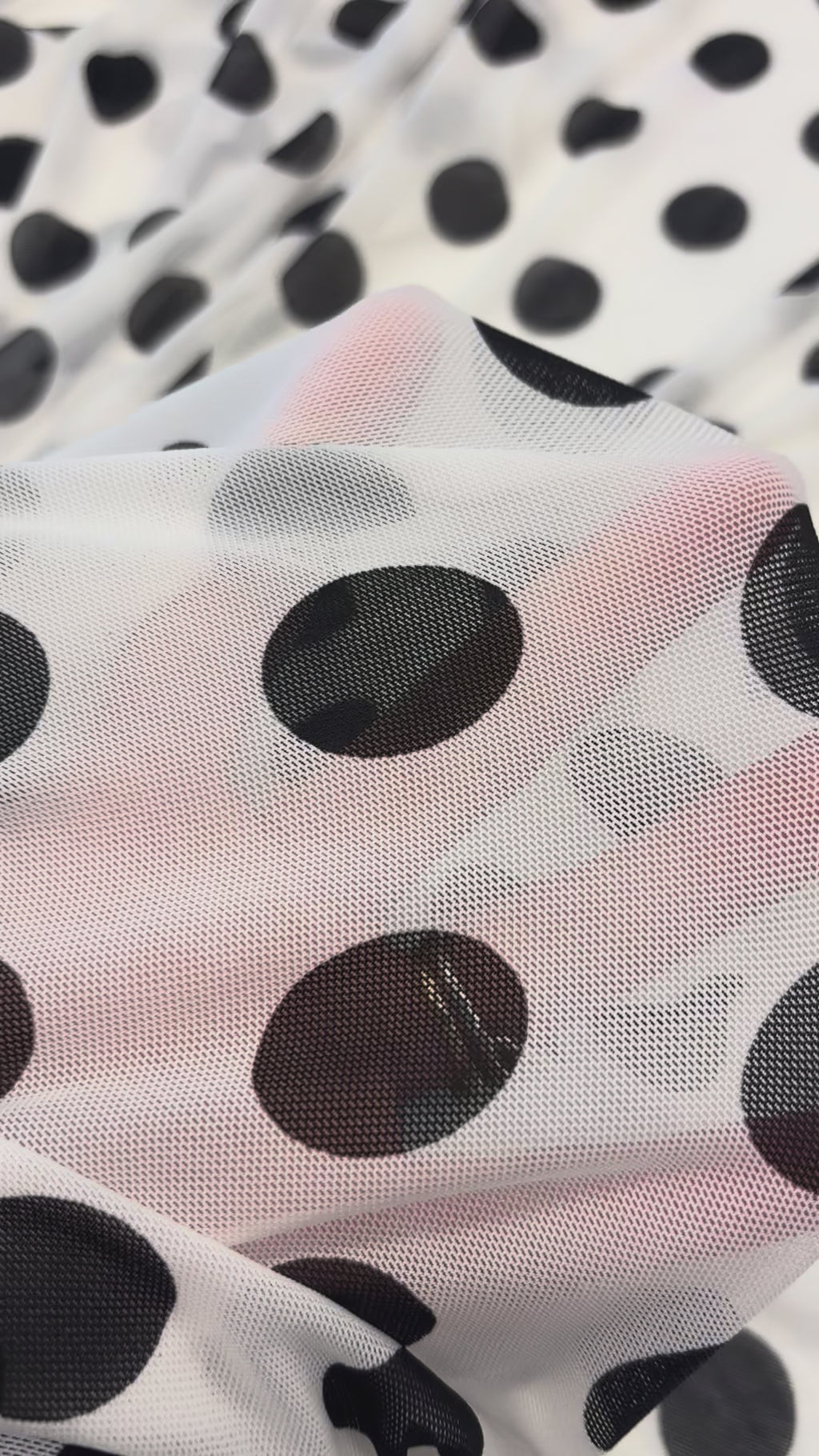 Tule branco com poá preto estampado, grande.