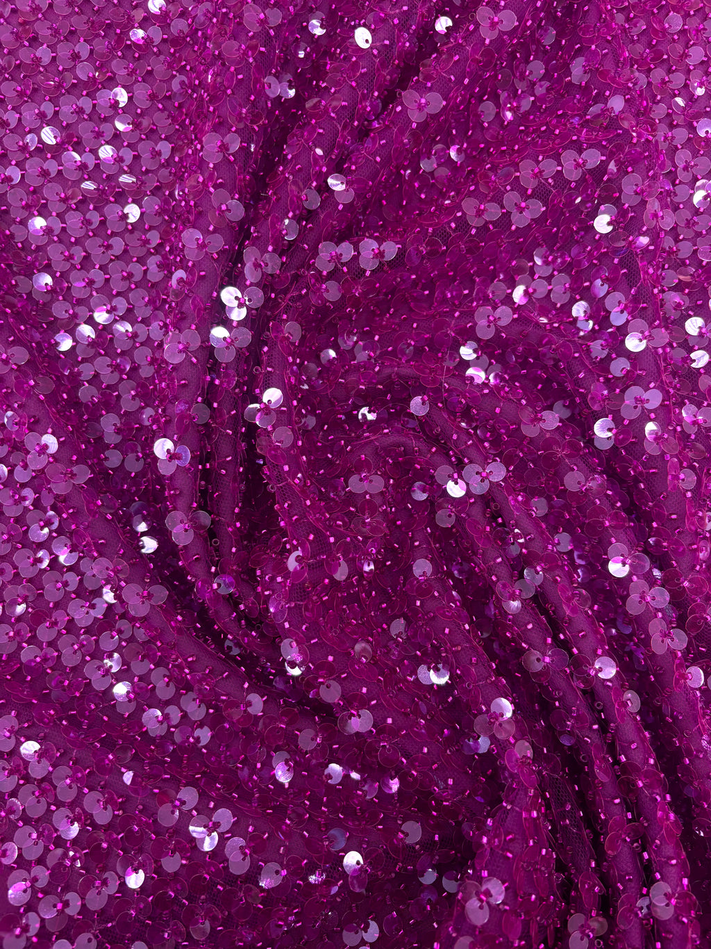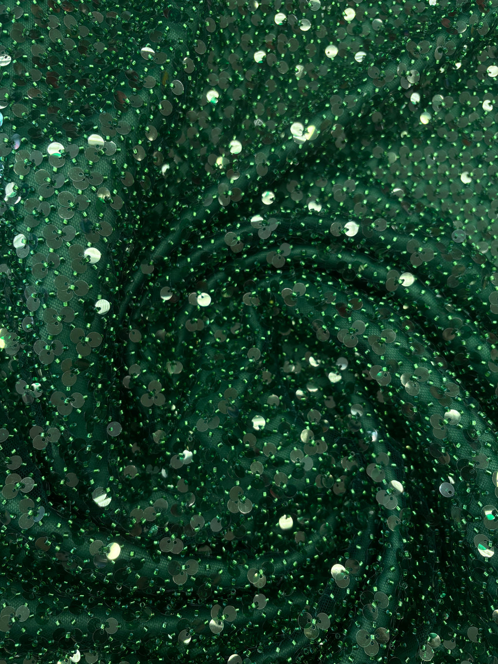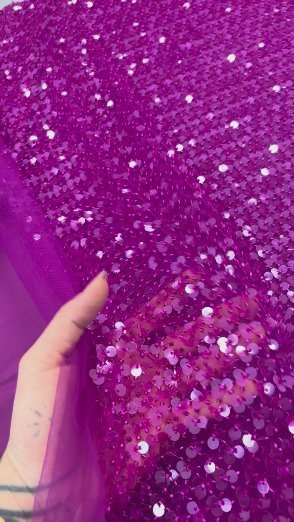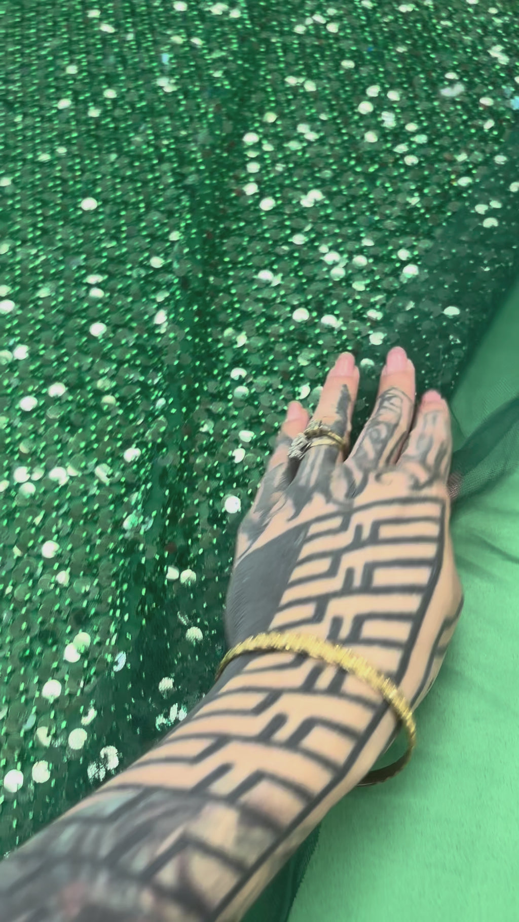 Tule bordado com paetês e pedrarias. Efeito bem brilhante. Disponível no verde e no rosa fúcsia.