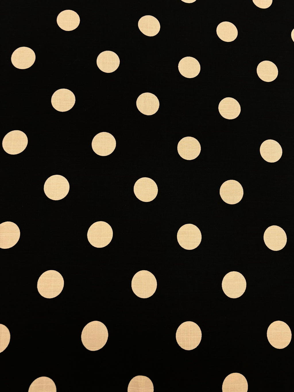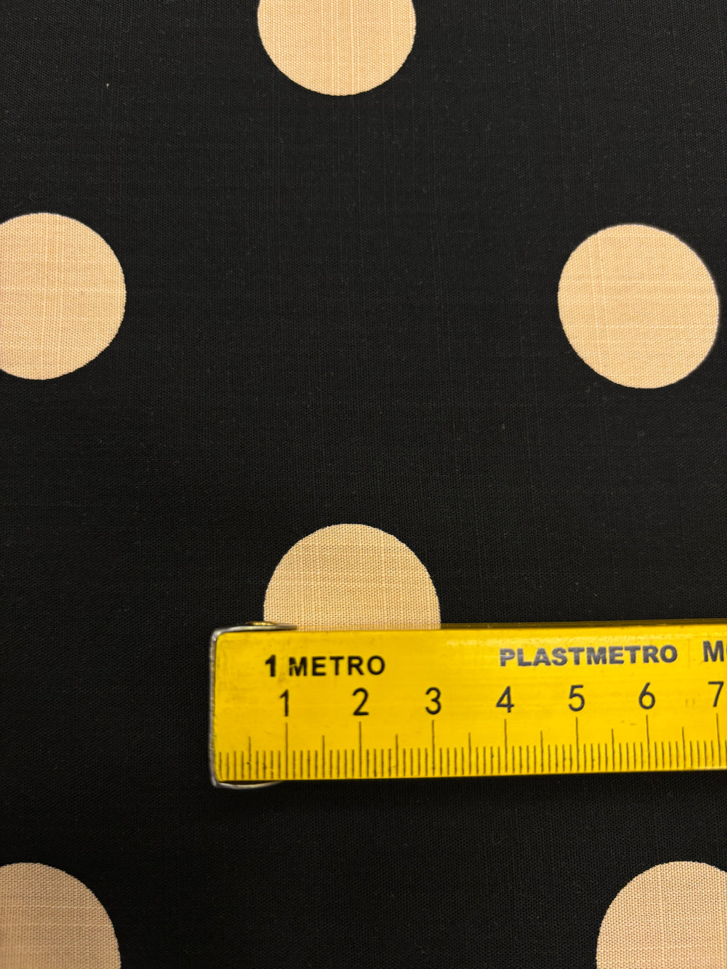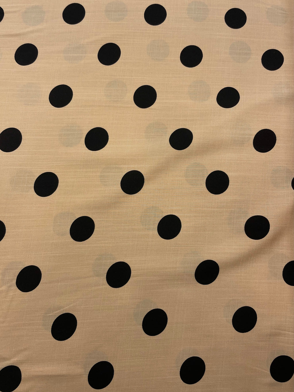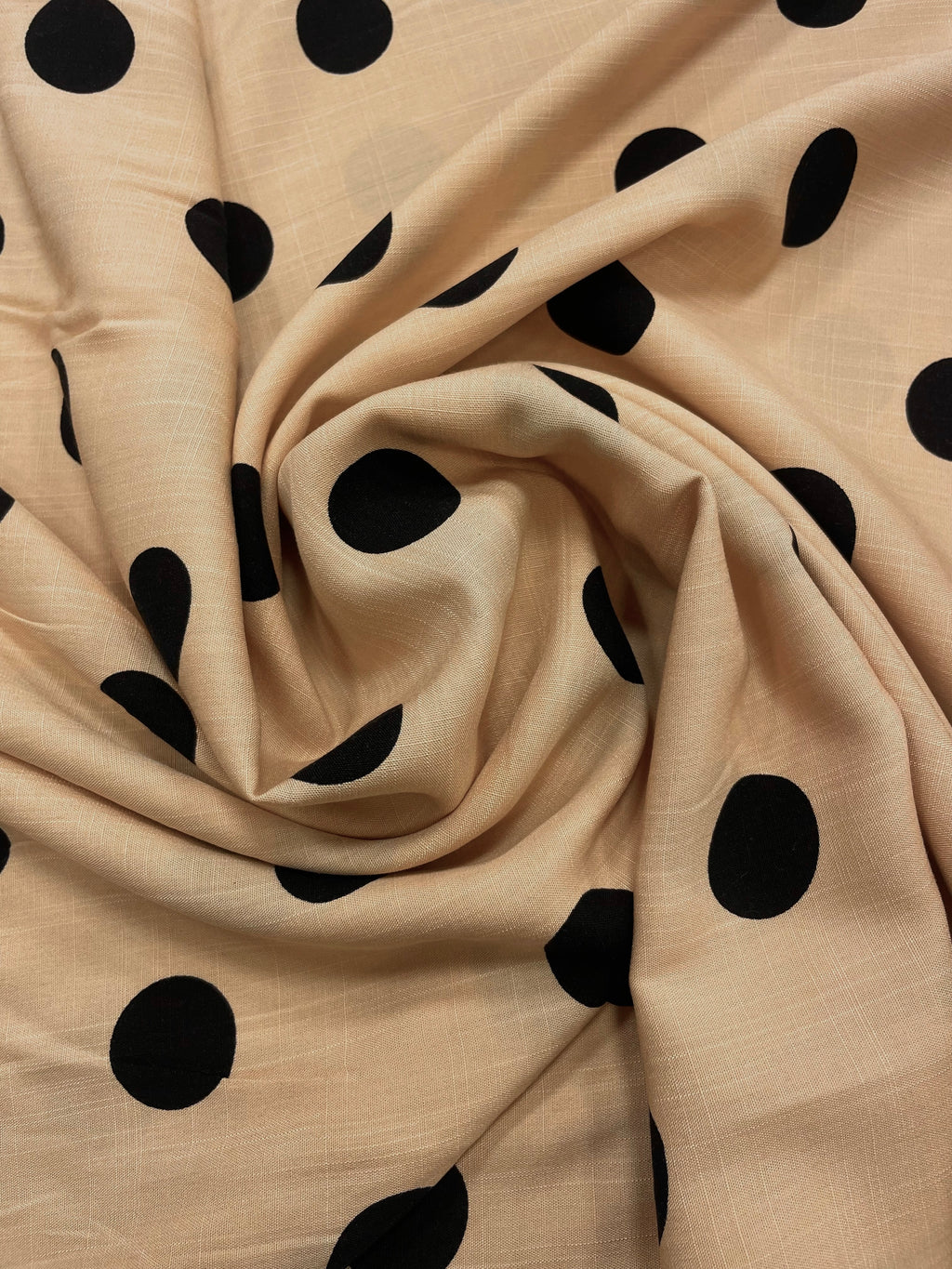 Viscose estampada com padrão poá. Bege com bolas pretas.
